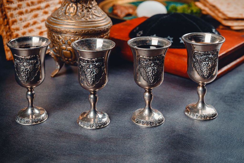 “Blessed art Thou, Lord our God, King of the Universe, who created the produce of the vine. Blessed art Thou, Lord our God, King of the Universe, who has … sanctified us with His Commandments. And Thou hast given us, O Lord our God, in love, … the Festival of Matzot [unleavened bread], the season of our freedom … and hast given us for our inheritance Your appointed holy times in rejoicing and gladness.” (The Yeshiva University Haggadah, p. 1.)