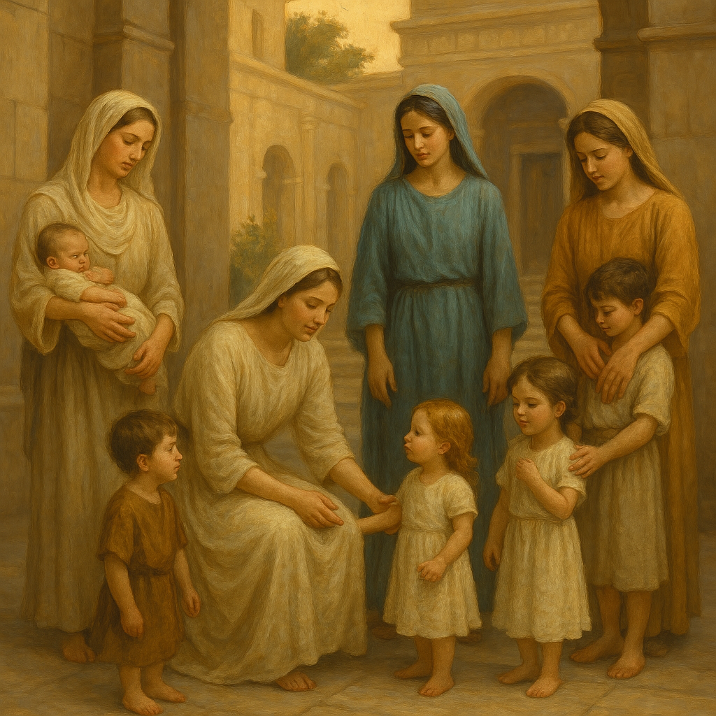 Only one woman with them isn’t mentioned as having children: Gishpa, who was likely a grandmotherly matriarch assisting the other mothers.
