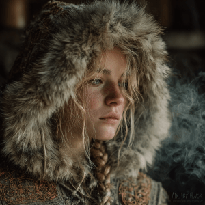 When the Princess saw that there was no more hope of changing her father’s resolution, she determined to flee away. In the night, when everyone else was sleeping, she got up and took three things from her treasures, a gold ring, a little gold spinning-wheel, and a gold reel; she put the sun, moon, and star dresses in a nut-shell, drew on the cloak of many skins, and made her face and hands black with soot.