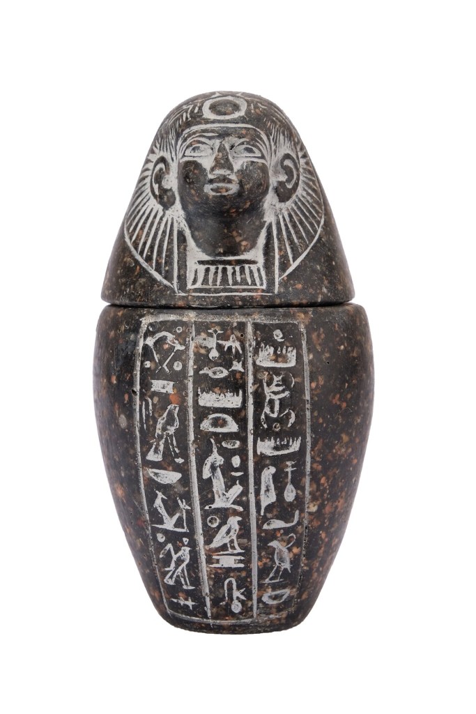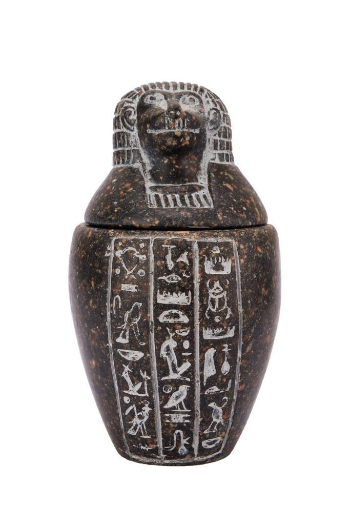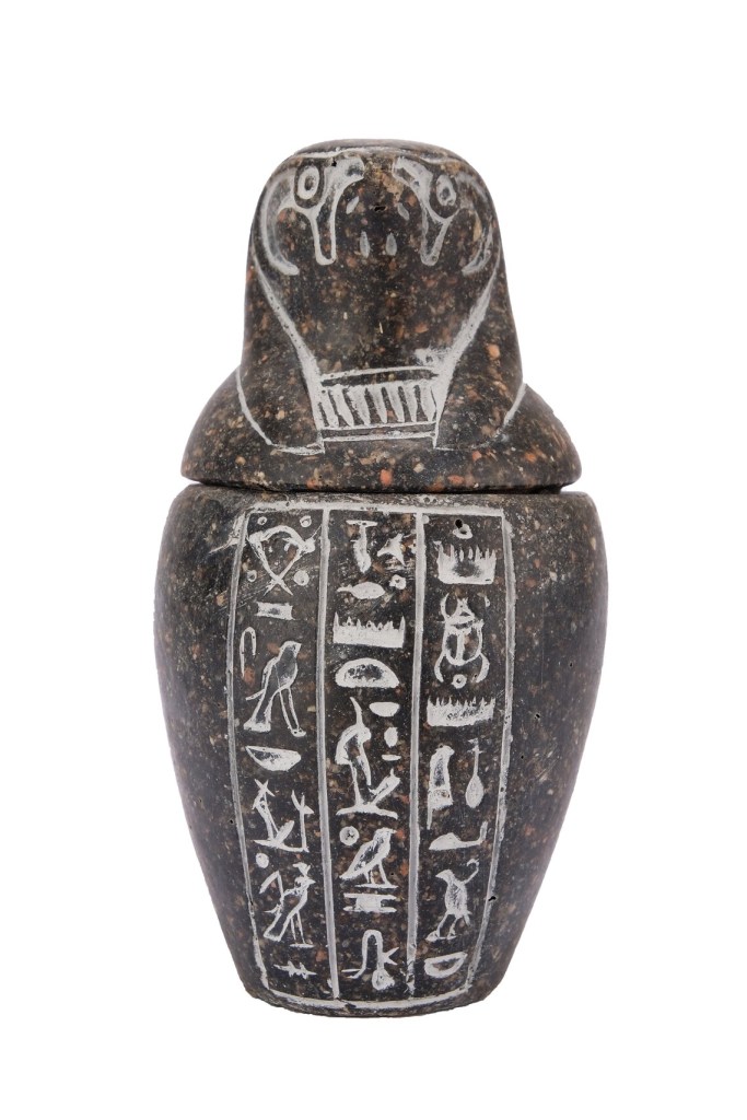 Imsety (Jmstj) the human headed son of Horus, protected the liver of the deceased and was in turn protected by the goddess Isis. His role was to make sure that the dead would make it to the afterlife, as he is asked to lift them up by Horus: “You have